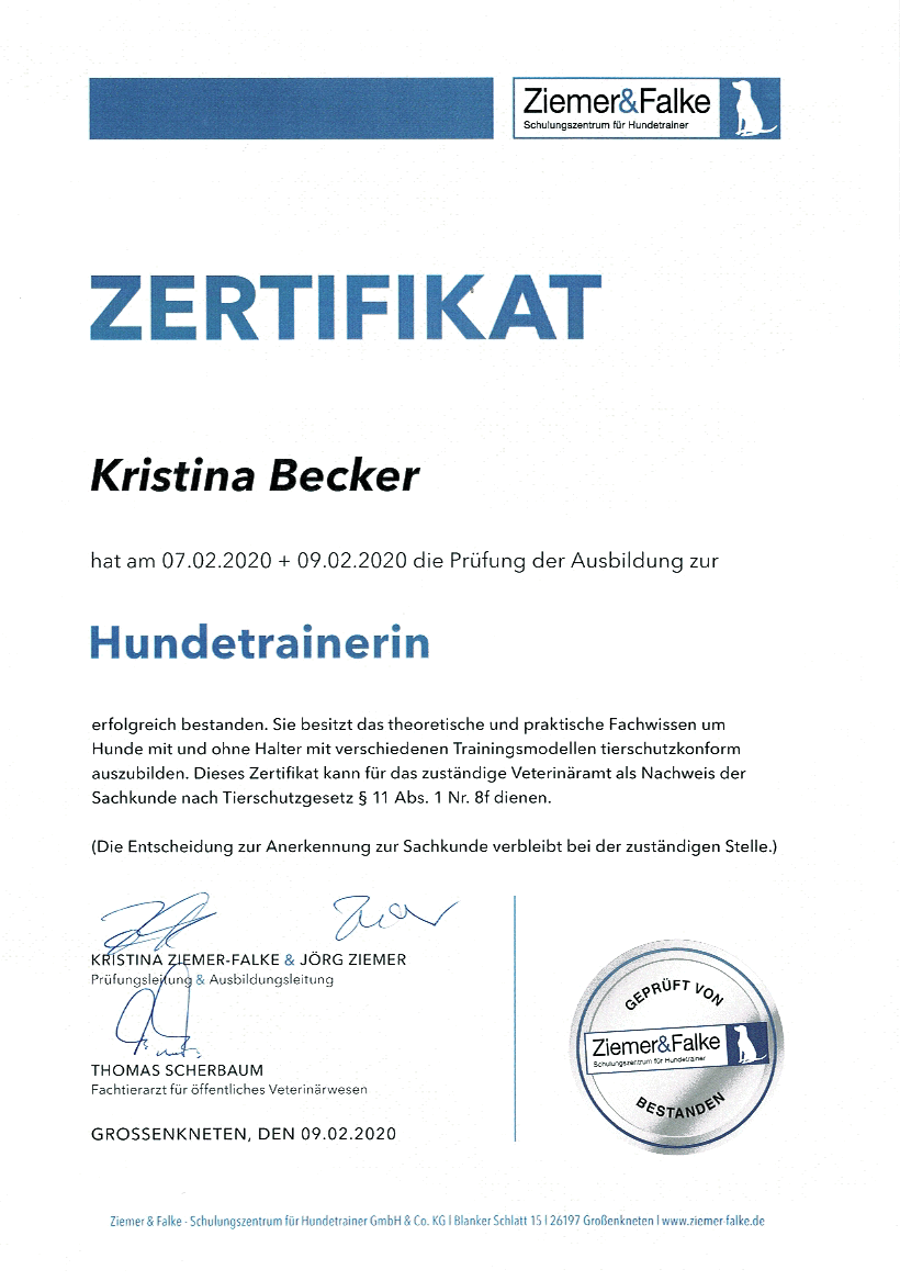 Also entschied ich mich dazu, selber eine Ausbildung zur Hundetrainerin zu absolvieren. Eine sehr informative Zeit, denn hier fand ich endlich die Hilfen und auch das theoretische Wissen über das Hundetraining, was mir immer fehlte.